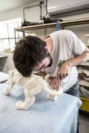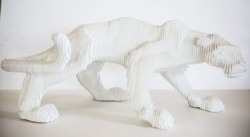 Les plaques sont réalisées en inox thermo-laqué pour garantir une forte résistance des couleurs. Débute une première étape de transformation des données, de logiciel en logiciel, pour obtenir un fichier informatique final compatible avec les machines. Les œuvres sont ensuite découpées au laser « pour sa précision diabolique » comme le souligne l’artiste-sculpteur. Les pièces sont alors évidées de certaines parties pour laisser place au dessin final et sont laquées dans la dernière phase de réalisation.