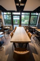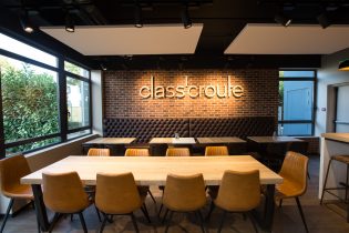 Un rafraichissement aurait suffi mais pour Katia U : « il était important d’apporter de la nouveauté pour nos clients. C’est au goût du jour, plus convivial et plus chaleureux. Nous voulions changer de cadre pour nous renouveler et faire plaisir ». Toute la salle a été rénovée au mois d’août pour créer une ambiance moins classique, plutôt « indus-cosy ». Les assises sont multiples : grandes tables pour les groupes, manges-debout, canapés et même une table d’hôtes pour 10 personnes. La nouvelle configuration, couplée avec du nouveau mobilier, a permis d’agrandir la cuisine tout en offrant plus de places assises. Class’ Croute « Régale les actifs tout au long de la journée » dans un environnement propice à la détente, la déconnection et au bienmanger.