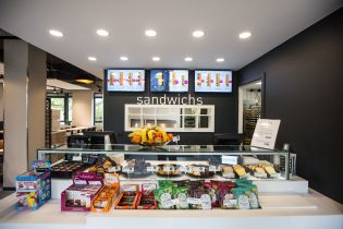 Les sandwiches, les salades, les pâtes, les plats chauds ainsi que la gamme complète de plateaux repas sont préparés sur place. Plus de 120 recettes sont réalisées chaque jour dont des mets végétariens et/ou sans gluten. Des nouveautés s’ajoutent à la carte permanente tous les mois, accompagnées d’animations sous forme de jeux-concours. Le mois dernier, « Retour en enfance » proposait un dessert à la fraise « Tagada » ou comment perdre 20 ans avec une seule bouchée !